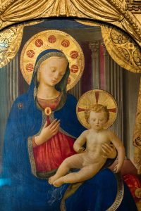 Beato Angelico (Vicchio di Mugello 1395 circa – Roma 1455), al secolo Guido di Piero, fu uno dei più grandi pittori del primo Rinascimento italiano. Nato a Vicchio di Mugello, presso Firenze, entrò nell’ordine domenicano assumendo il nome di Fra Giovanni da Fiesole. La sua pittura unisce profonda intensità devozionale e straordinaria raffinatezza formale, con un uso luminoso del colore, una delicata resa delle figure e una precoce attenzione alla prospettiva, in costante dialogo con il linguaggio degli altri grandi artisti contemporanei. Attivo soprattutto a Fiesole, Firenze e a Roma, realizzò alcune delle opere più alte della pittura sacra del Quattrocento, tra cui gli affreschi del convento di San Marco a Firenze, capolavori di equilibrio, contemplazione e armonia. Ammirato dai contemporanei per la sua vita devota oltre che per il suo talento e per la spiritualità della sua arte, e già conosciuto dopo la morte come Beato Angelico, venne ufficialmente beatificato da papa Giovanni Paolo II nel 1982.